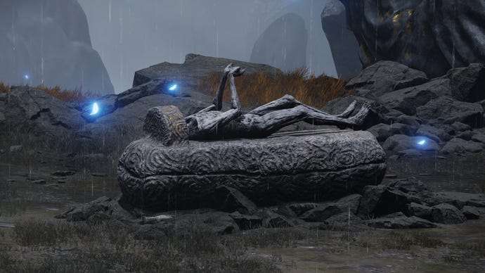 From there, head south and east to the Finger Ruins of Rhia Site of Grace, where you’ll find the sarcophagus for duplicating a Remembrance.