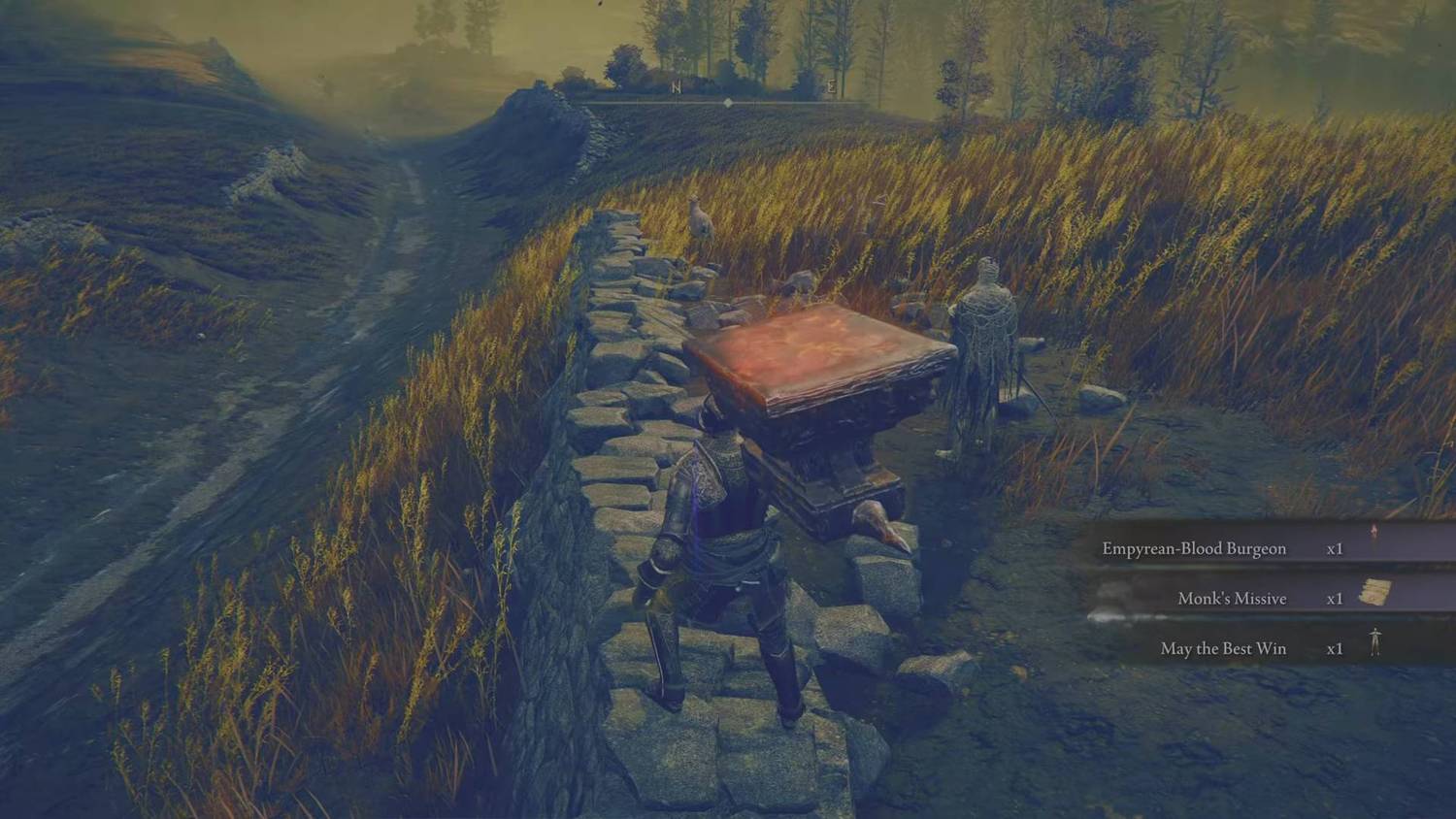 After defeating Rellana, head to the Highroad Cross Site of Grace. Here, you can talk to Leda and the Hornsent, and you’ll also pick up the Monk’s Missive Note and the ‘May the Best Win’ gesture.