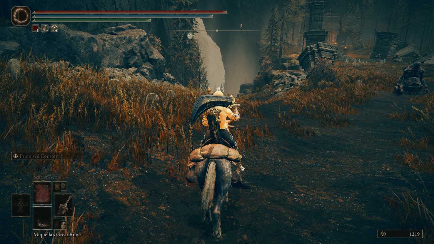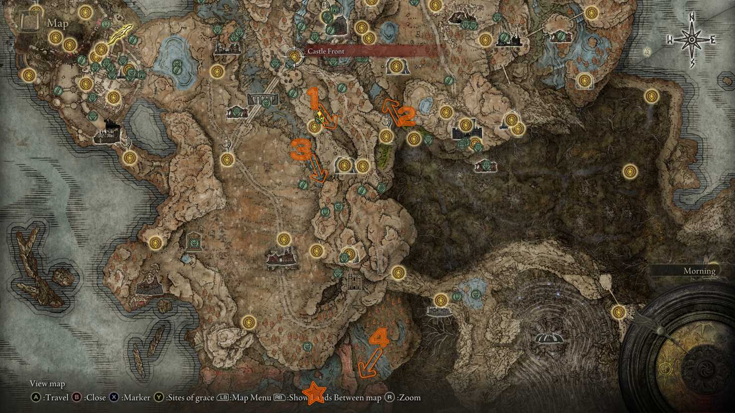 Now you can explore this important sub-region of the Southern Shore. Ride south to find the map fragment stele and another Miquella’s Cross location.